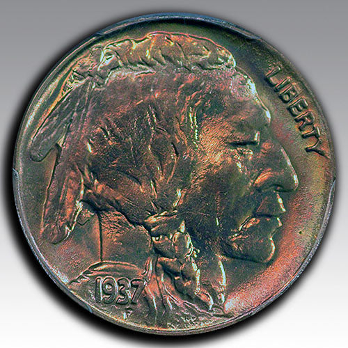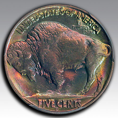 The finest known! The three legged Buffalo nickel is one of the most famous United States rare coins. And it’s a very cool and sexy rarity. This spectacular specimen has virtually perfect, mark-free surfaces. The strike is beyond amazing full hair and braid detail and the Buffalo’s horn and tail are sharp and 100% full. The luster and color is amazing and iridescent. This one glows in the dark! This is the finest three legged Buffalo we have ever seen!