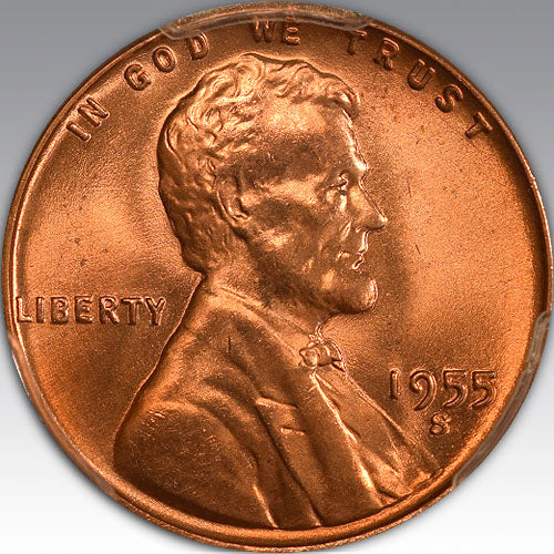 1955-S 1C, RD MS 66+ RD