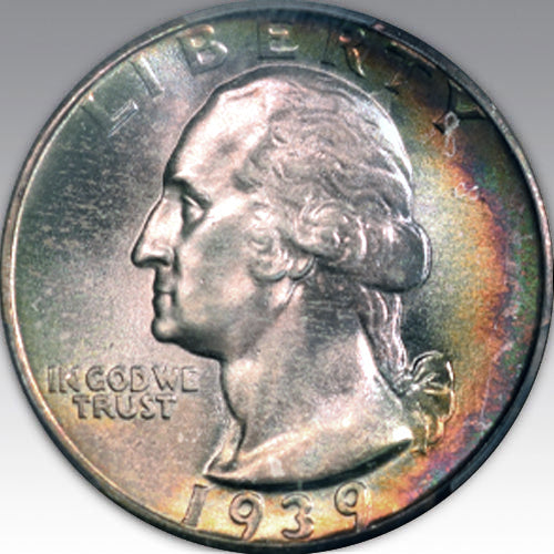 CMQ: “Exceptional"!!Attention all eye appeal freaks!!!! The early pre-World War II Washington quarters Were not saved at Tim e of issue and Ultra Gems are hard to find. This coin, even with near perfect surfaces is all about the insane toning….super deep golden rainbow peripheral!